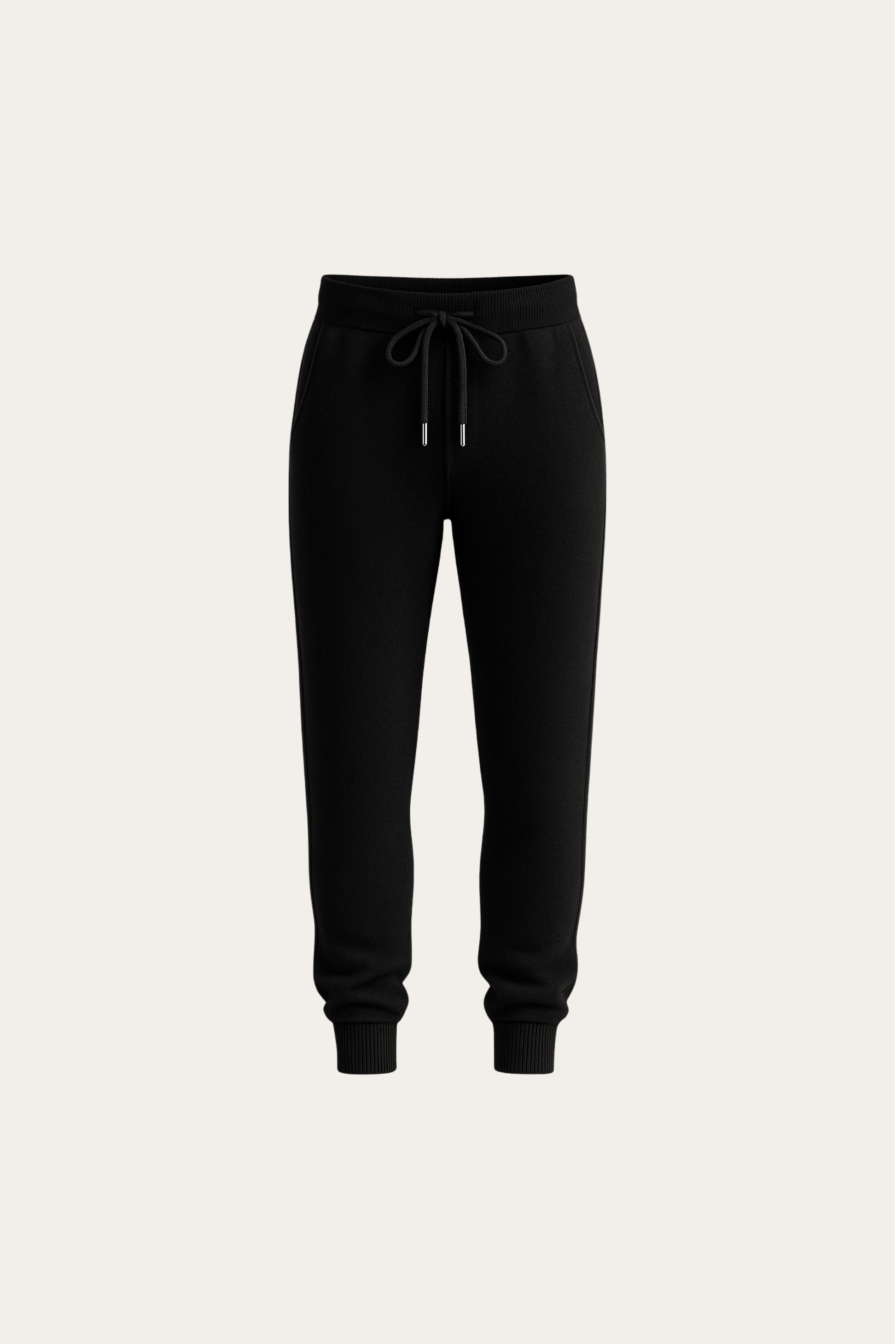 Softly sculpted lounge trousers crafted from pure, ultra-soft cashmere. The knit is smooth, warm, and gently elastic, offering a calm matte surface with exceptional comfort. A refined ribbed waistband with adjustable drawcord ensures a precise fit, while the tapered leg maintains a balanced and minimal silhouette, an essential expression of relaxed luxury.